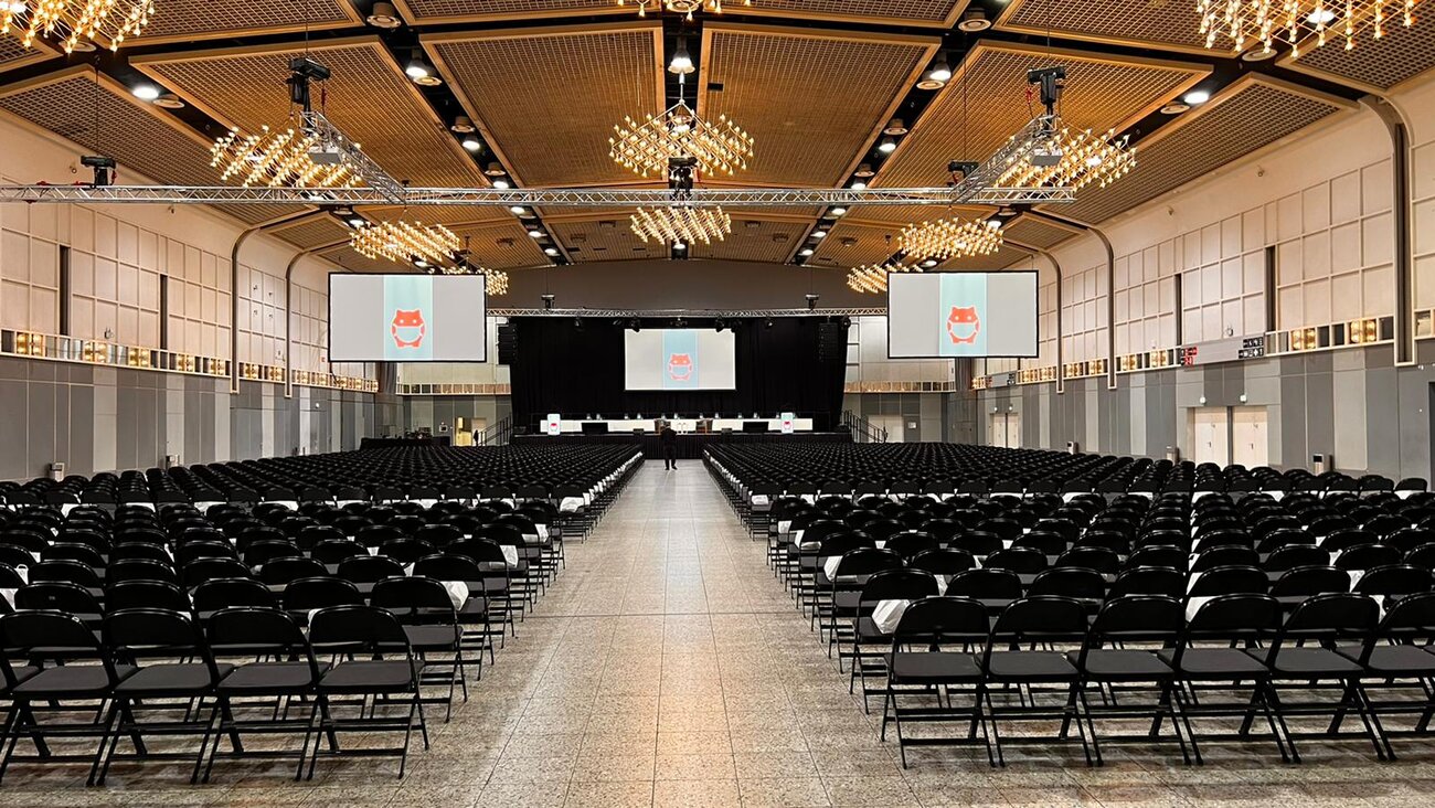 Hall 1 is flexible and can be arranged for different types of events depending on requirements. Seating types range from congresses, where row seating may be required for lectures, to gala events, where round tables are provided for guests and entertainment areas for dancing or music.