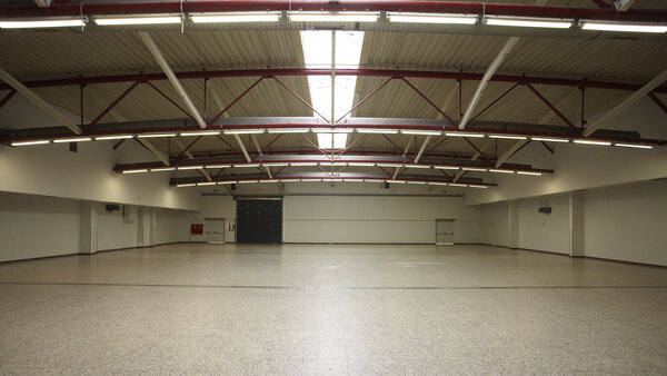 The room has WLAN, gas, water, electricity and compressed air. Suspension points for technical installations are possible.