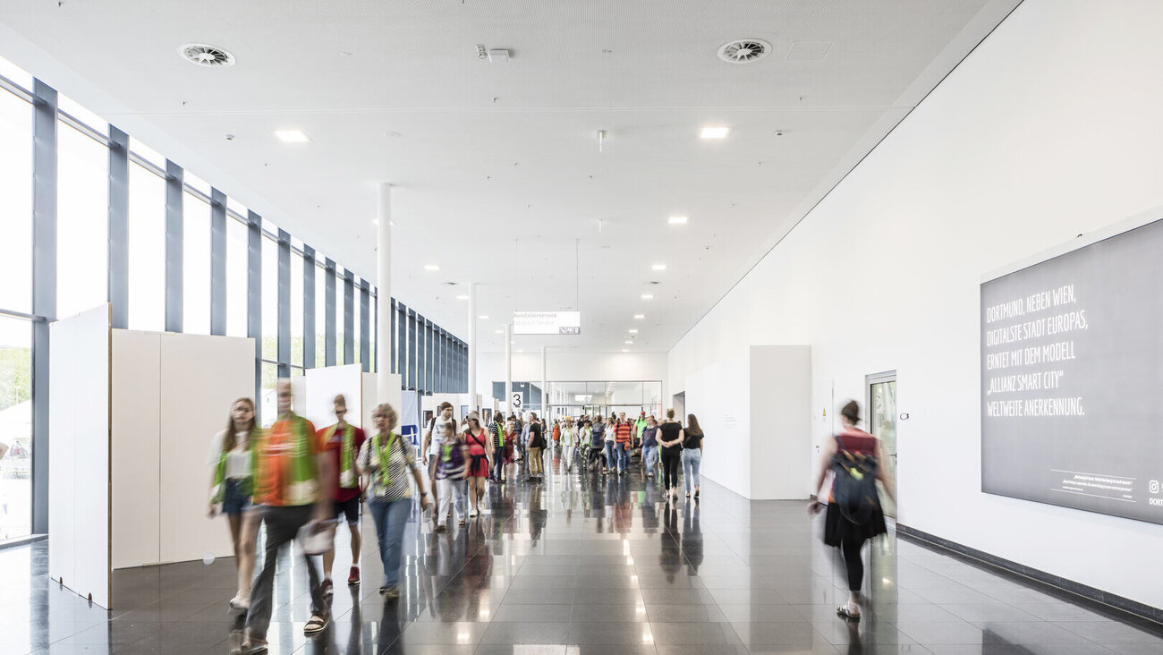 Hall 3 is one of the largest halls on the exhibition grounds and is the perfect venue for trade fairs, congresses, conferences and gala events. With an impressive total area, it offers space for a large number of exhibitors and visitors. The multifunctional use of the hall makes it possible to hold all kinds of events here. Whether it is a congress, an exchange of specialist knowledge or a festive evening event - you will find the ideal location in Hall 3.