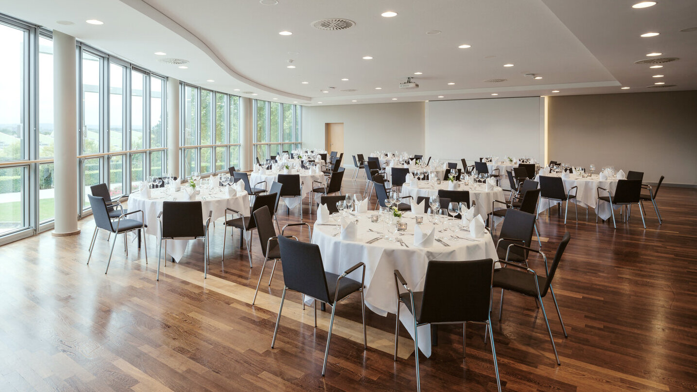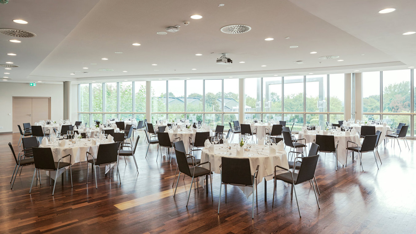 Room 8 is located on the upper floor of the congress center with a direct view of the rose garden.
