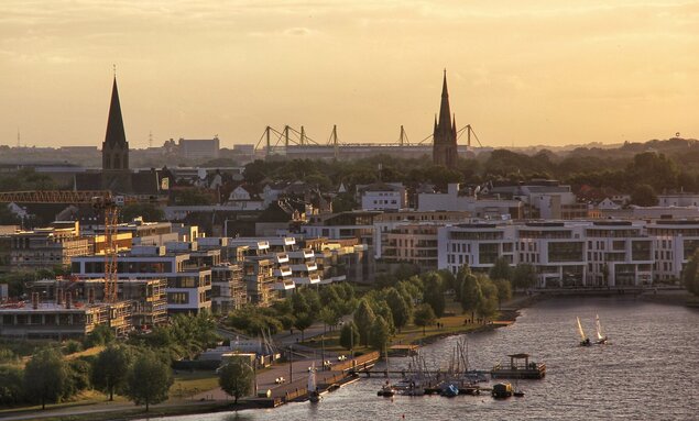 Recreation and sports on the water in Dortmund: Hengsteysee (connection to the Ruhr), Dortmunder-Ems-Kanal (connection to the North Sea), Phönixsee (Lake Phoenix)
