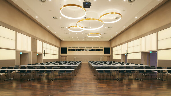 Für kleinere Kongresse eignet sich unser an die Messehallen angeschlossenes Kongresszentrum hervorragend. Neben dem größten Saal, dem Goldsaal, stehen zahlreiche weitere Räume in verschiedenen Größen zur Verfügung. Ergänzt wird das Angebot durch großzügige Foyerflächen, die sich ideal für begleitende Ausstellungen eignen.